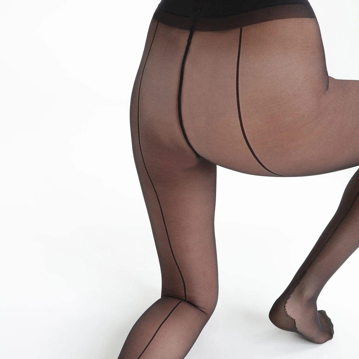 - Un collant noir alliant l’ultra féminité de la couture arrière et l’élégance de la transparence
